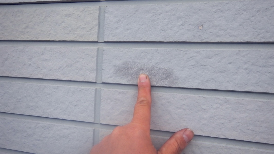 まだ、塗膜は水の浸透を防ぐ活膜が残っている状態なため、外壁へのダメージも軽く抑えられています。